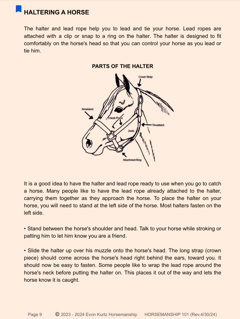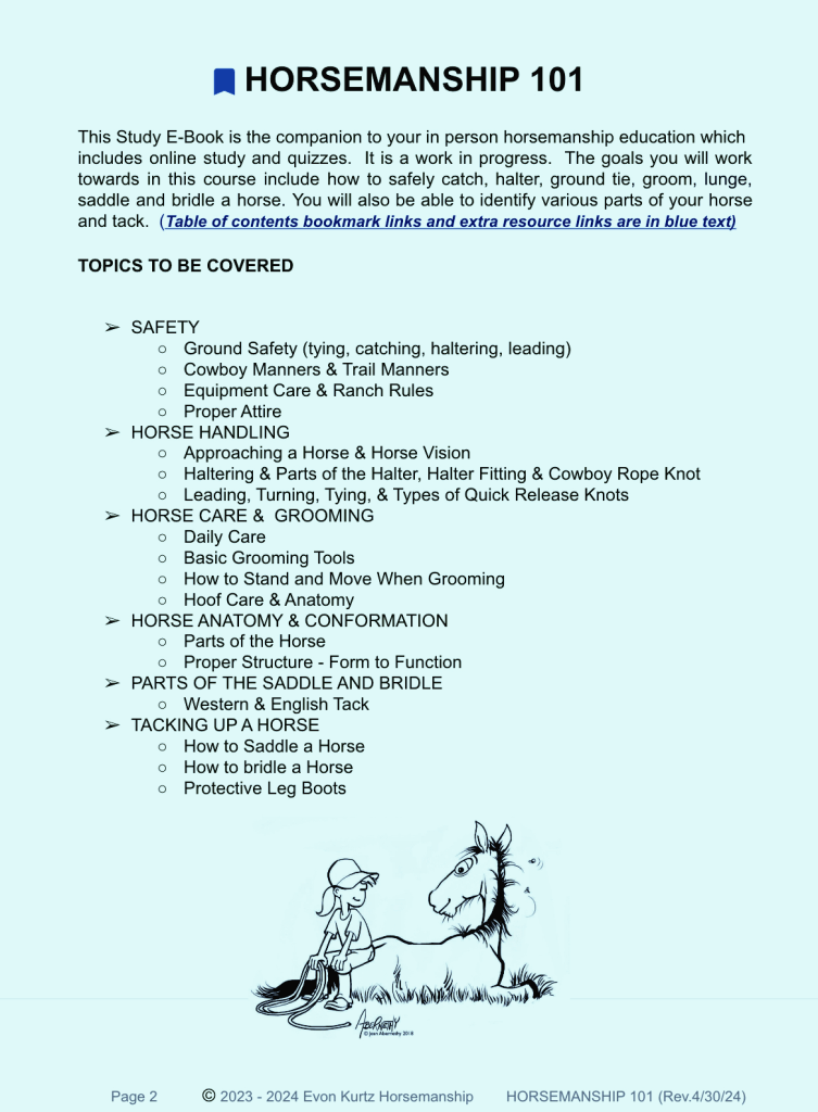 The Horsemanship 101 study book along with the coloring workbook are both created by Evon.